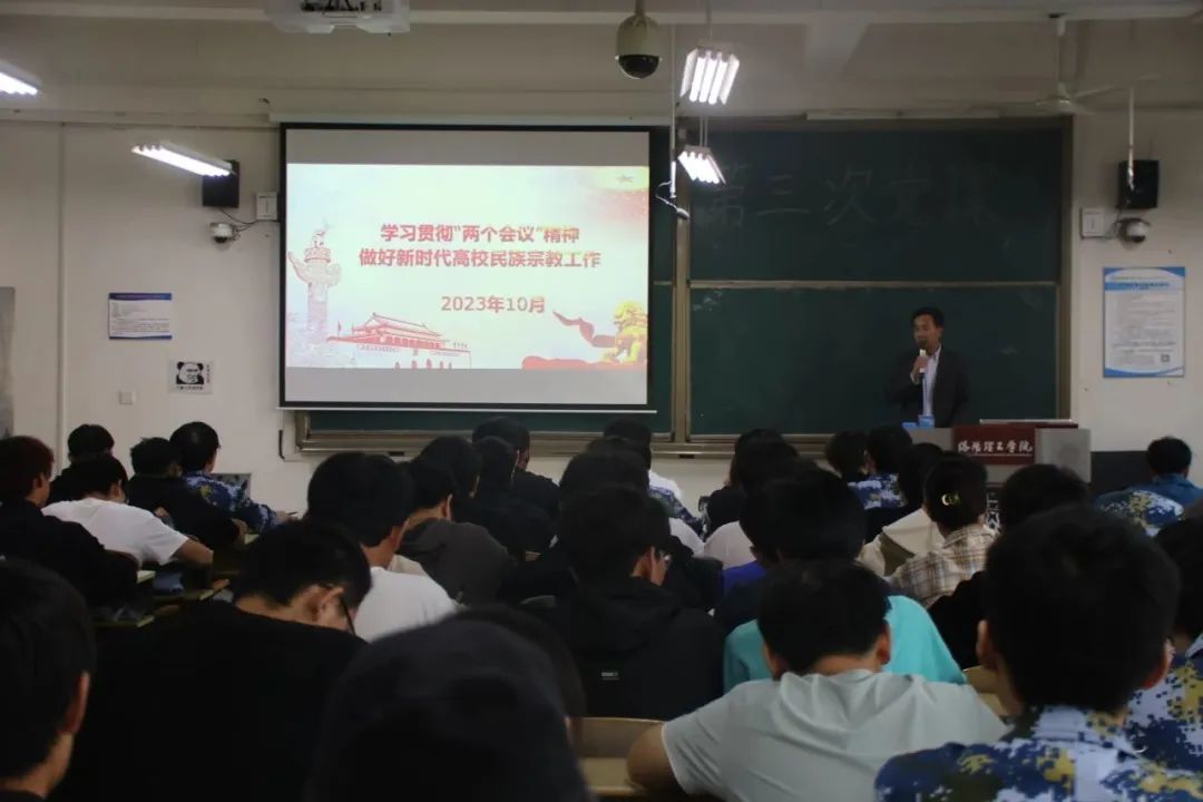 11月1日下午16点30分,美高梅娱乐场 于CS401教室开展第31期入党积极分子培训班第三次党课,美高梅娱乐场 党委统战部郭强部长授课。本次党课围绕党的民族宗教政策法规等相关内容展开。郭强老师详细解读了党的民族宗教政策,他指出要正确认识和处理好党的民族宗教问题,坚持党的领导和社会主义制度,维护国家统一和民族团结。他还通过案例分析,让同学们更加清晰地了解民族宗教政策的应用和实践。最后,他鼓励同学们要坚定信仰,牢记党的宗旨,为党和人民作出贡献。