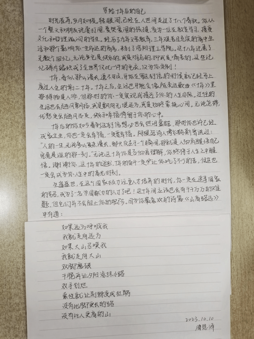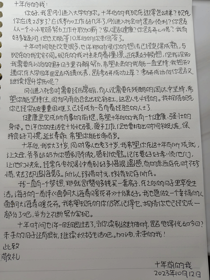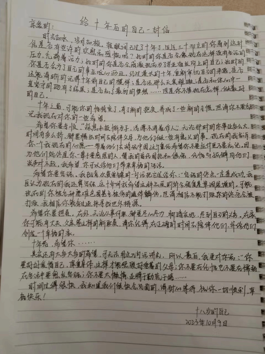 同学们热情高涨,积极参与本次活动。通过这封信,同学们表达出了很多平常不会轻易流露出的情感,有自己对学业、事业、感情等方面的期许,还有对家人和友人的祝福与感激。