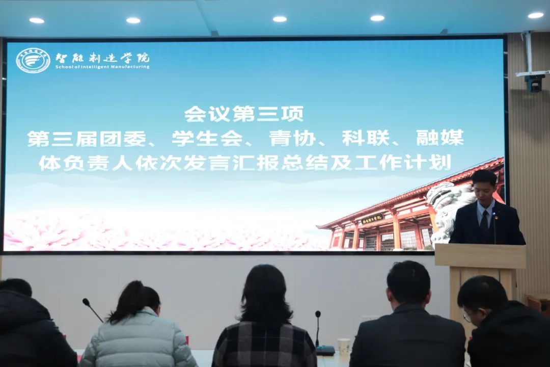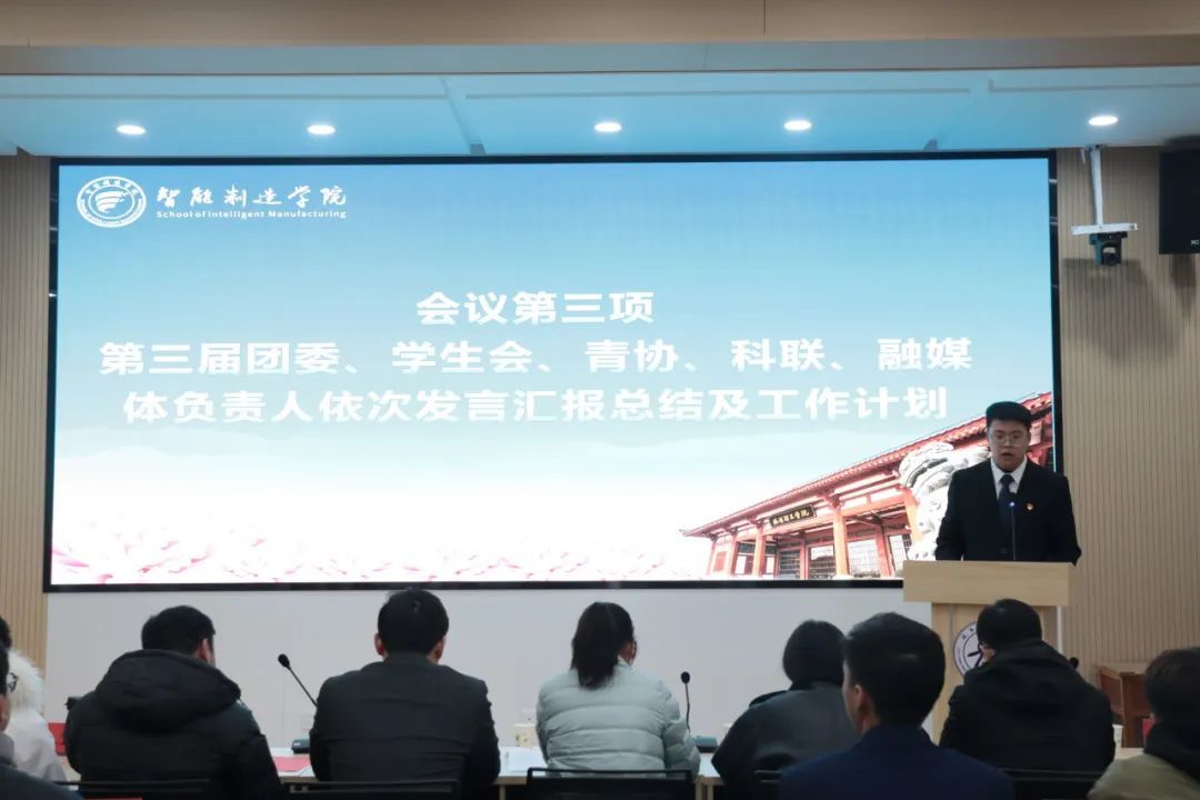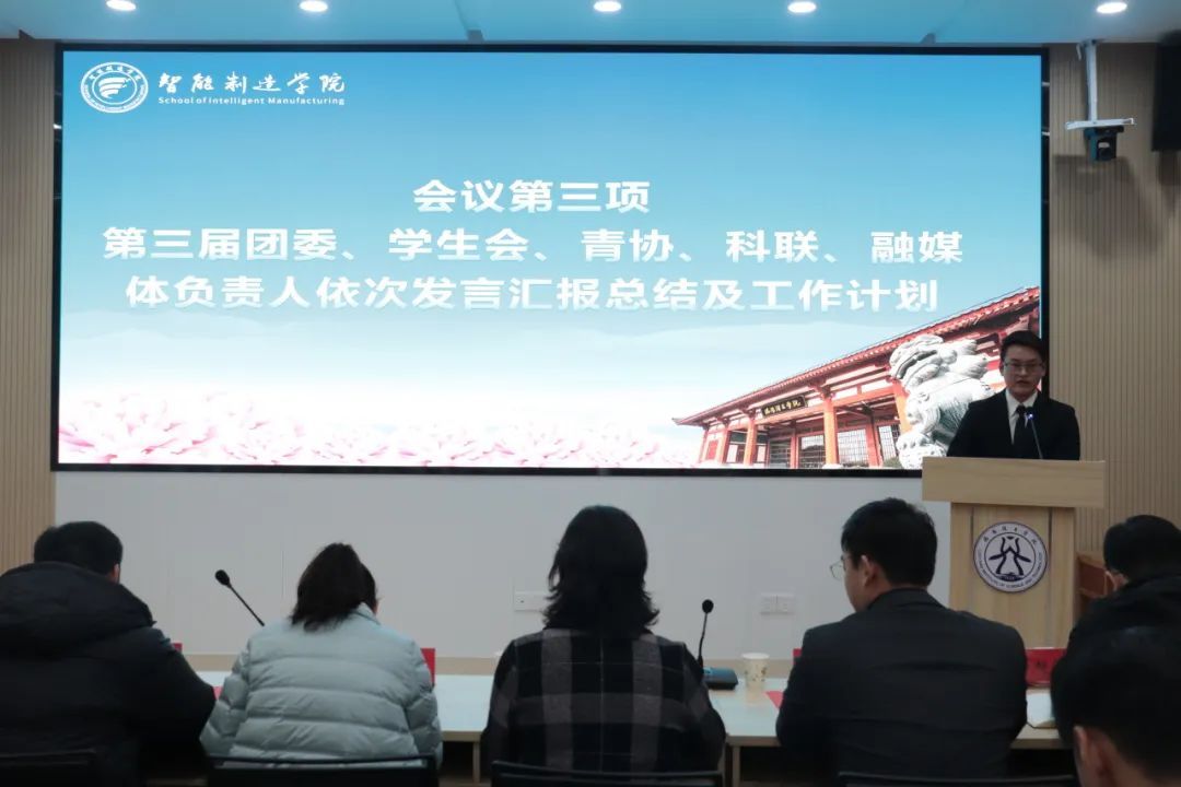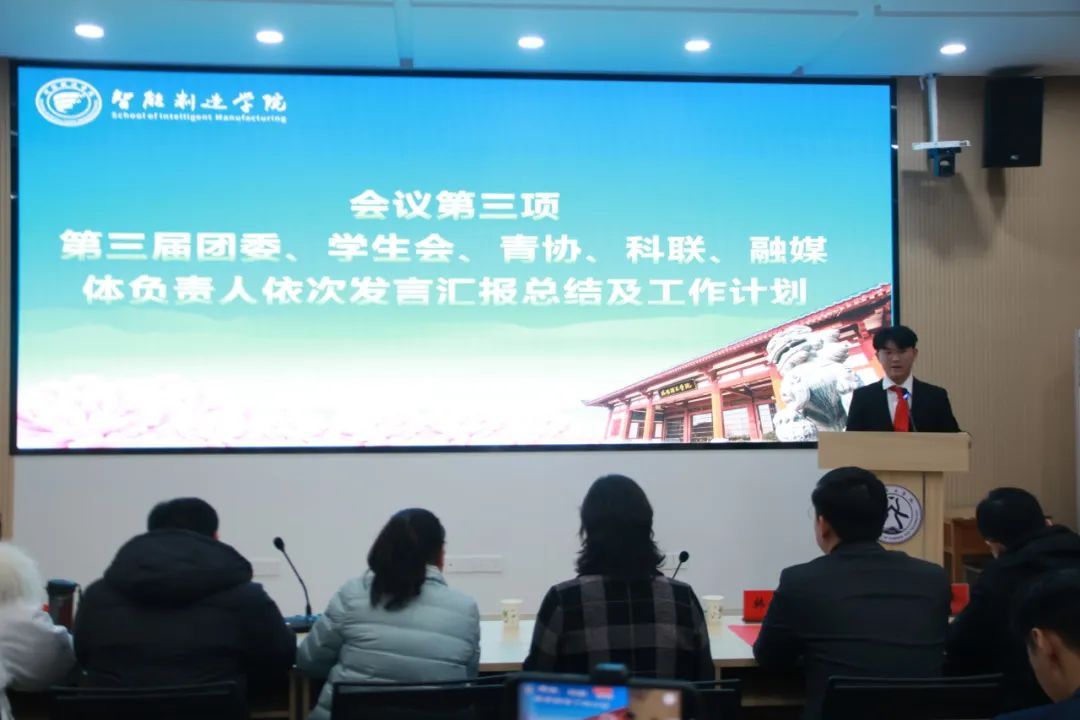 接着由第三届团委、学生会、青协、科联、融媒体负责人朱轶然、赵芷湃、陈盛浩、于鹏伟、李诗骐依次发言汇报总结及工作计划。