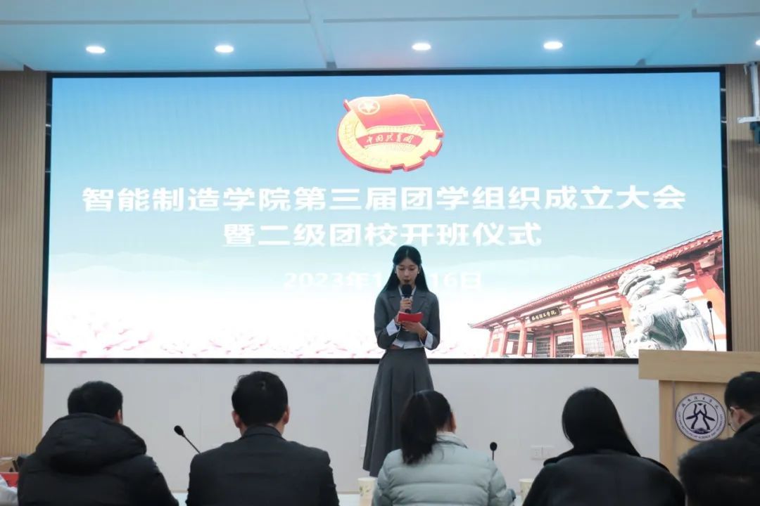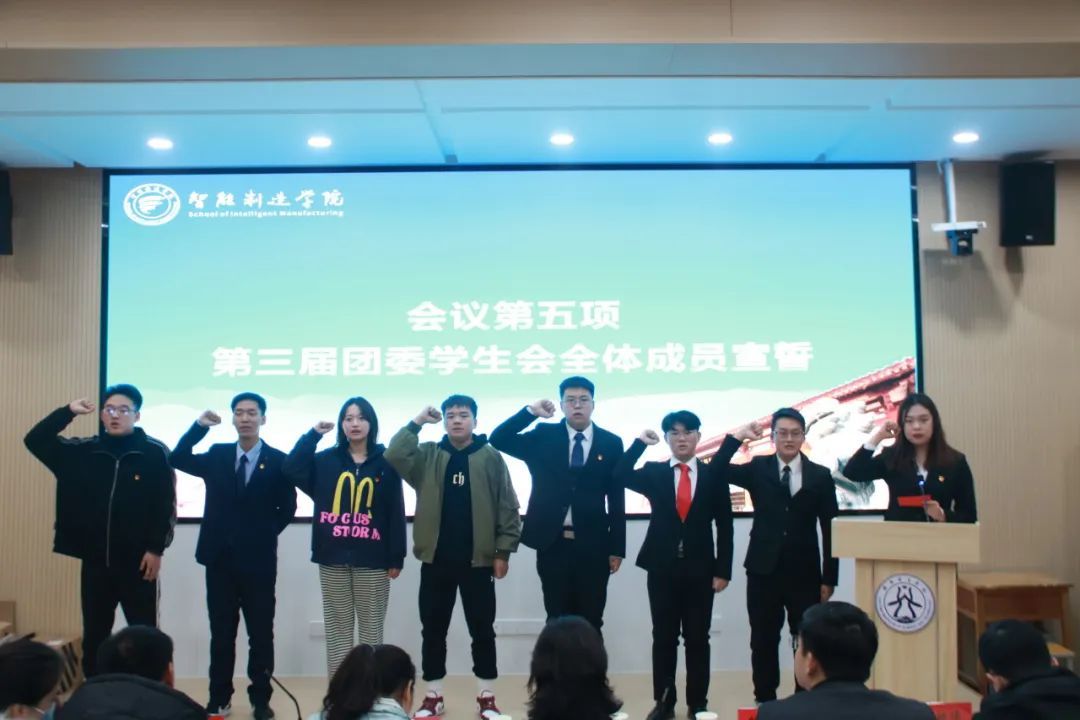 为进一步加强美高梅娱乐场 团学组织建设,智能制造美高梅娱乐场 于11月16日下午16点在CS203会议室举办了第三届团学组织成立大会暨二级团校开班仪式,美高梅娱乐场 党委书记赵建利、党委副书记王艳敏、团委副书记韩玮,辅导员老师陈雷、王亚磊、杨超烽、柴少军、赵天贺、韩坤、刘恒宇出席会议,第三届团学组织全体成员参会。梁博涵同学担任主持人。