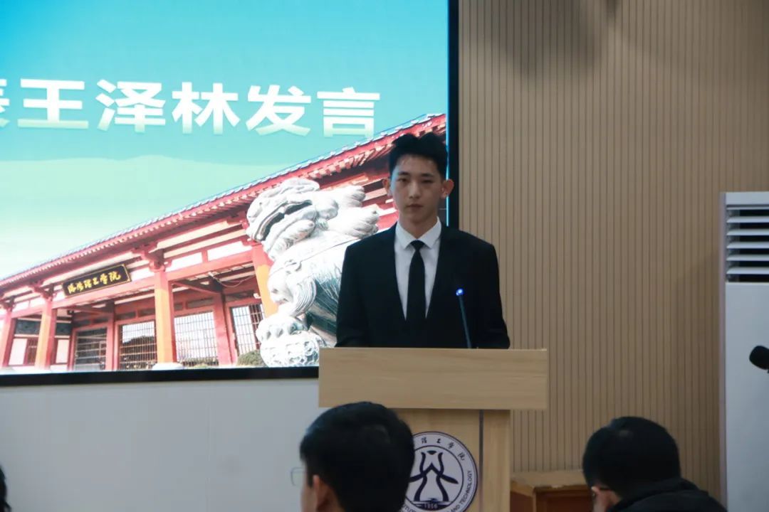 新干事代表王泽林同学发言,通过在团学组织中与学长学姐们一个多月的相处,真正地在美高梅娱乐场 团学组织中找到了归属感和荣誉感,承诺在接下来的工作将积极工作,全心全意为美高梅娱乐场 师生服务。