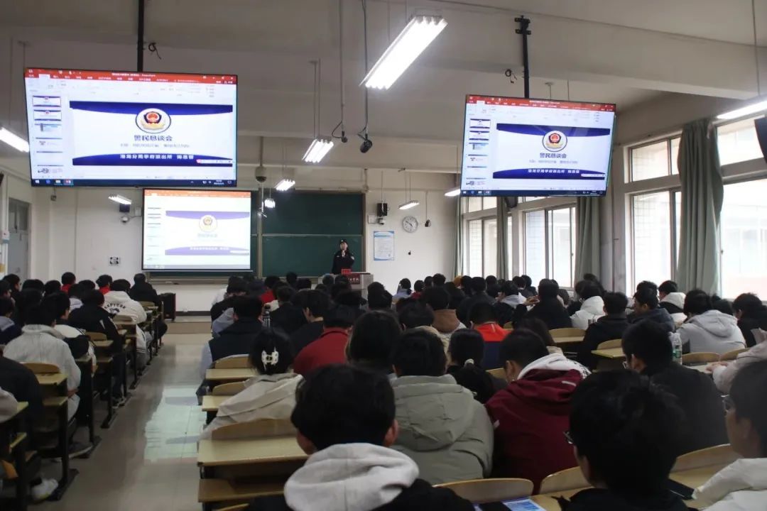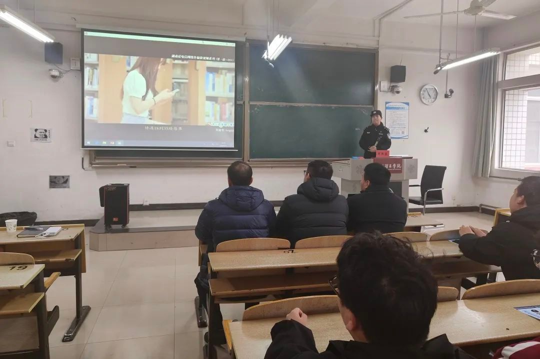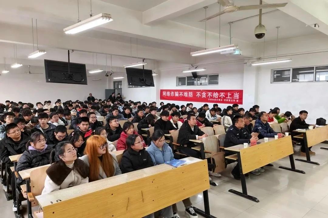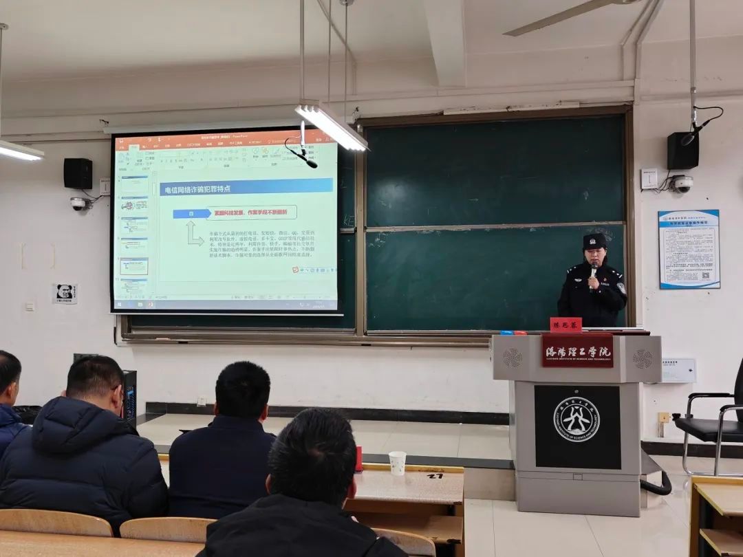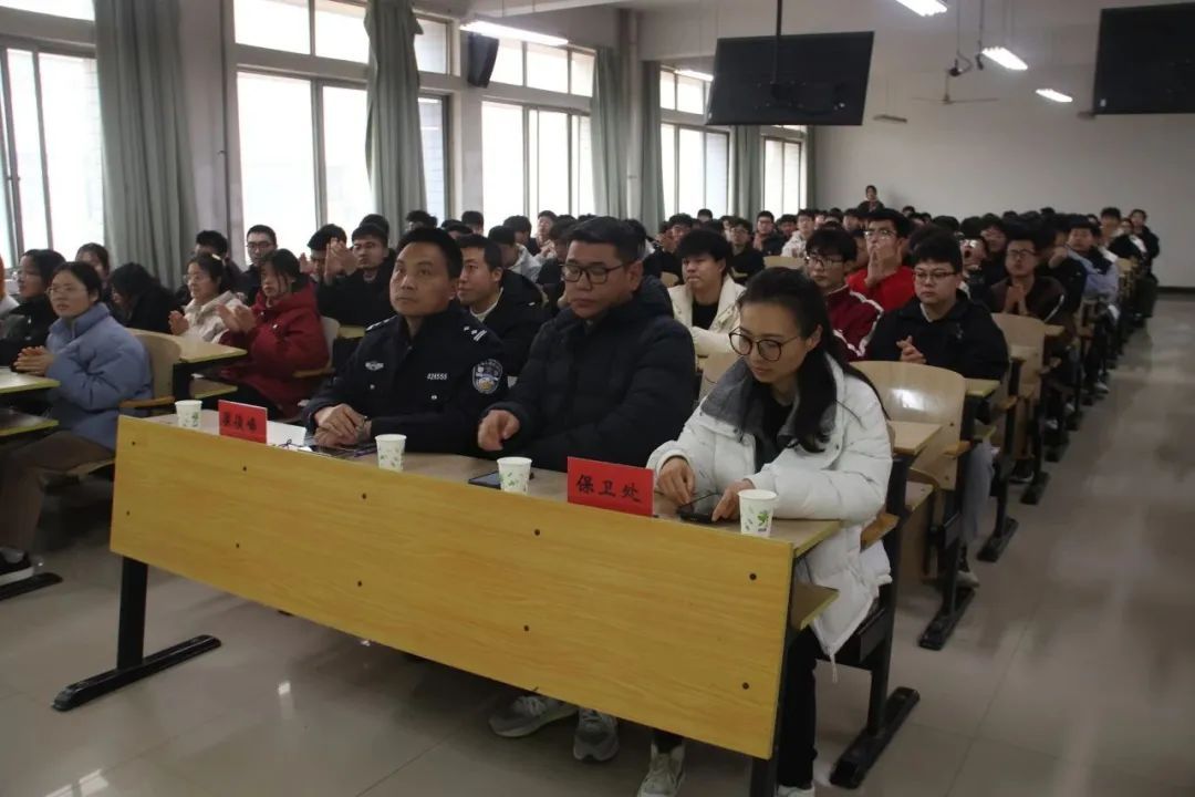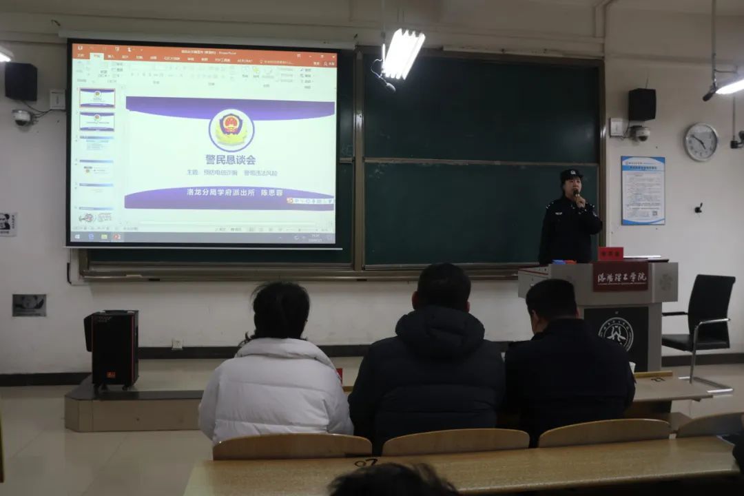 3月5号下午,洛阳市公安局洛龙分局学府派出所联合美高梅娱乐场 保卫处,在机械楼CS401教室举行2024年首场反诈讲座活动。学府派出所所长翟俊峰、民警陈思蓉、孟玉颜,美高梅娱乐场 保卫处副处长周志平、政保科科长张林林、综治科科长林珊,美高梅娱乐场 辅导员张灏、杨亚伦老师出席,共180名大一学生参加此次活动。
