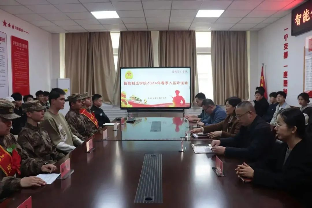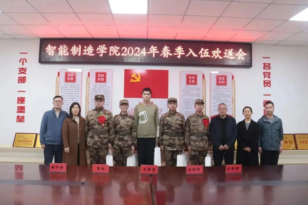 3月12日,美高梅娱乐场 于党员之家开展2024年春季应征入伍大学生欢送座谈会,美高梅娱乐场 党委书记赵建利、党委副书记兼副院长朱德荣、辅导员刘恒宇、张灏、王思阳、退伍教官汤昕龙、管晓冲出席本次座谈会,姬中尉、王嘉豪、刘增坤、刘孝辉、曹旭五名应征入伍的同学参加。