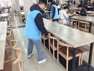 院青协组织32个团支部每天轮流开展“我的第五节课”活动,累计480名学生志愿者们对宿舍周边、餐厅、镜月广场等责任区进行垃圾清扫、单车摆放、桌椅规整、劝阻不文明行为等行动。