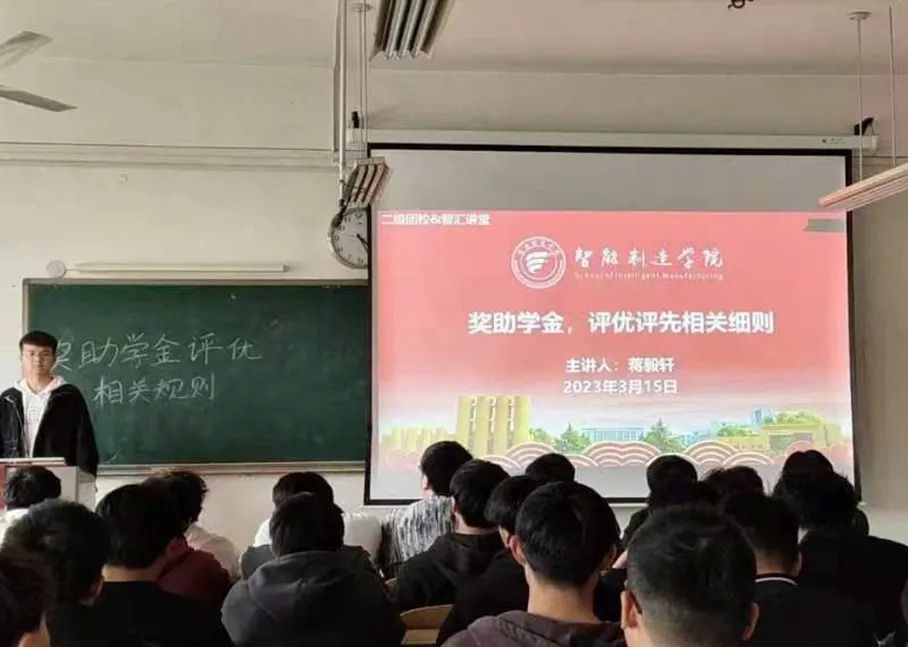 3月15日16:30,美高梅娱乐场 于CS402开展了第四次团课培训,权益委员会部长蒋毅轩授课,2023级副团支书,组织委员和权益委员会干事参会。他以《奖助学金,评优评先相关细则》为主题,用凝练的语言给大家讲述了奖助学金评定的各项流程,同时还给大家说明了何为评优评先以及相关条件,使同学们对这些原来比较模糊的概念类事物有了更加清晰的认知。
