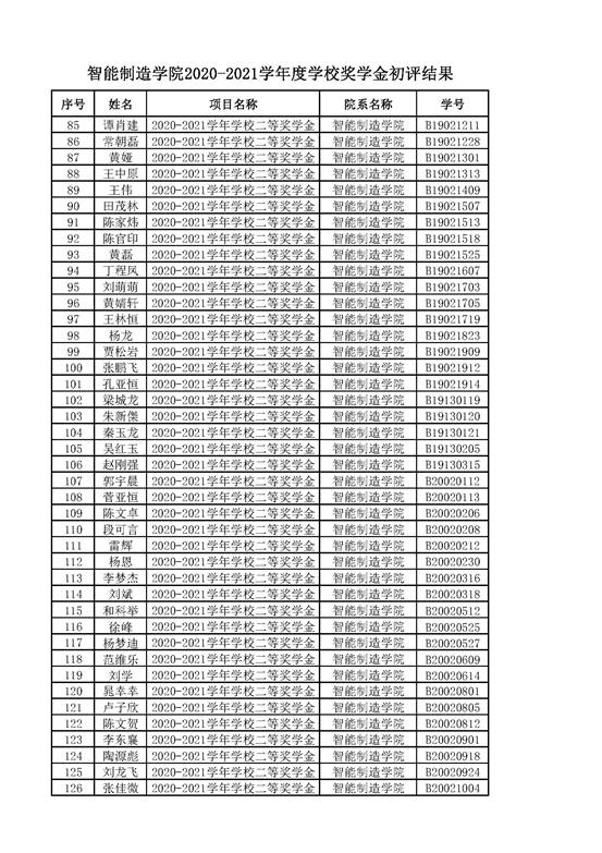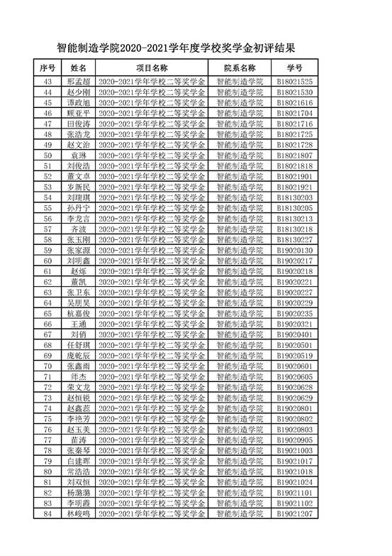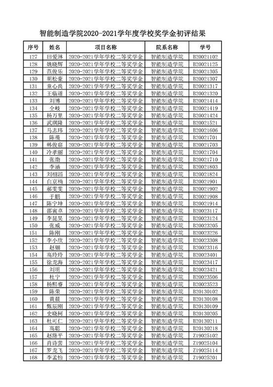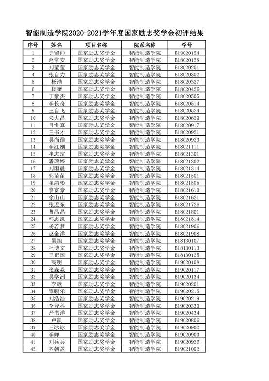 智能制造美高梅娱乐场 2021年奖学金公示