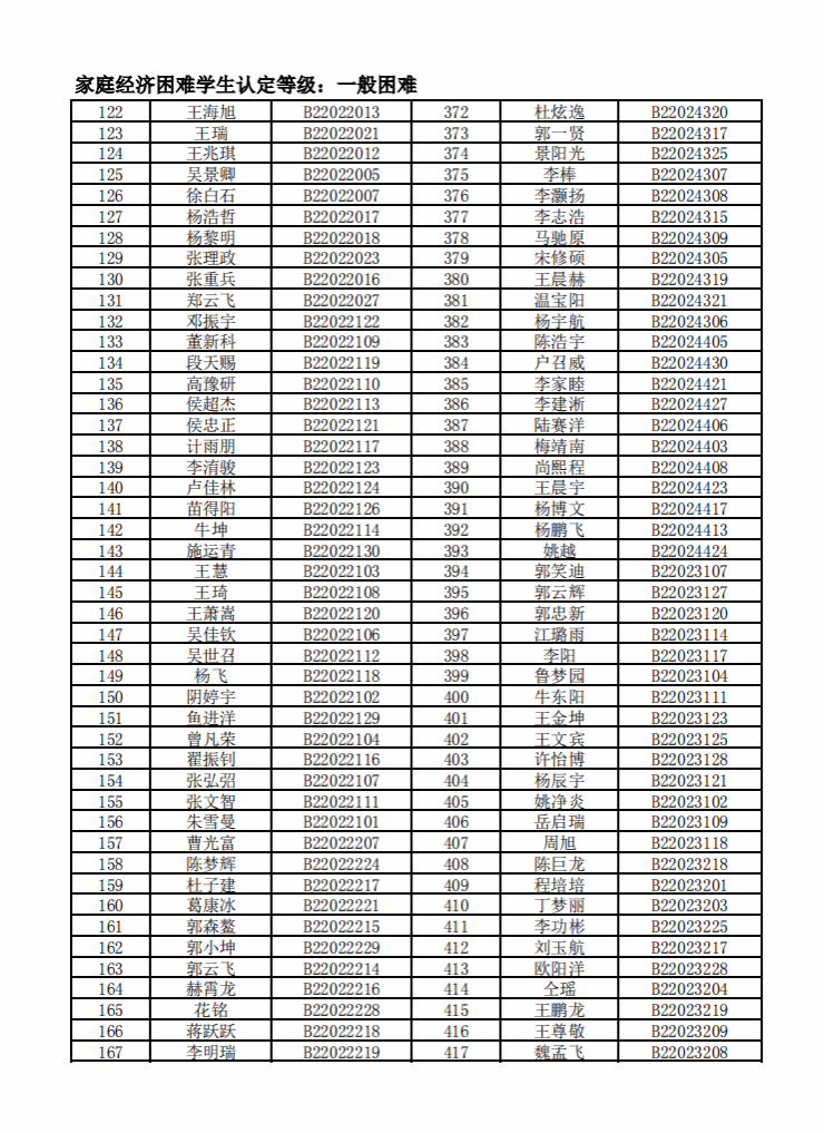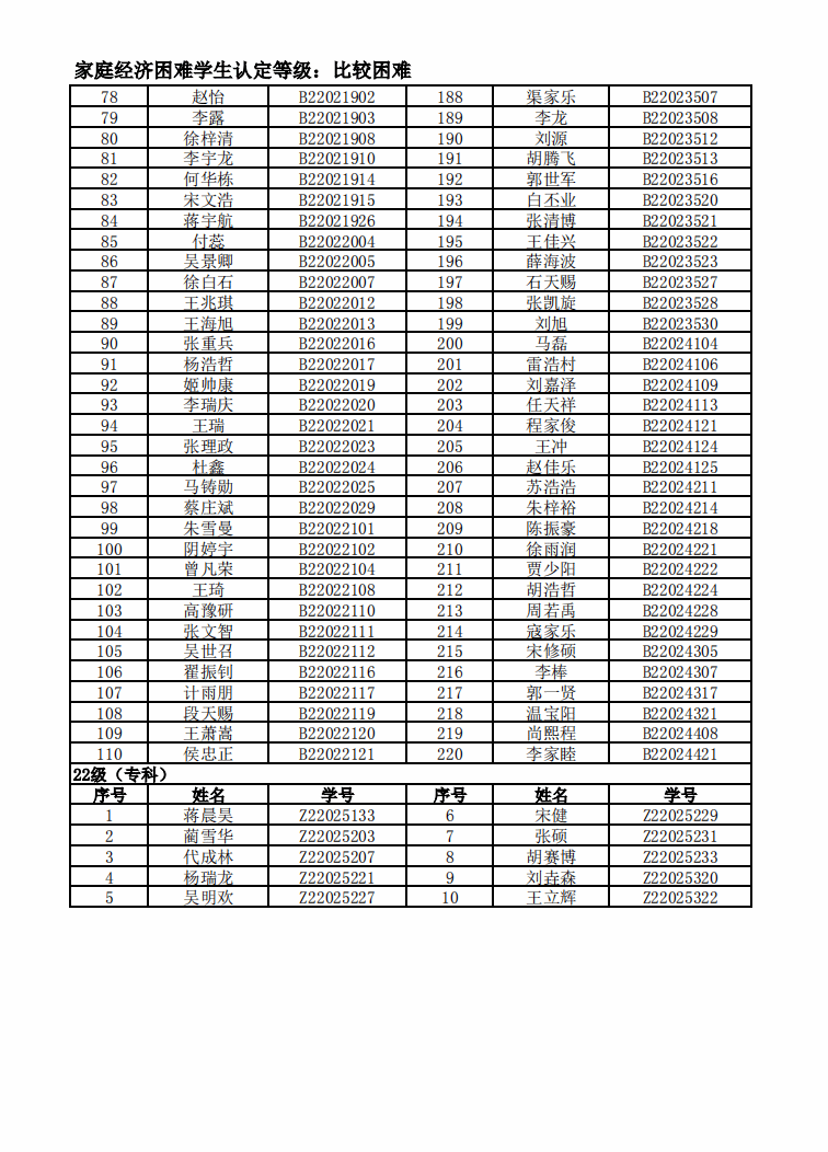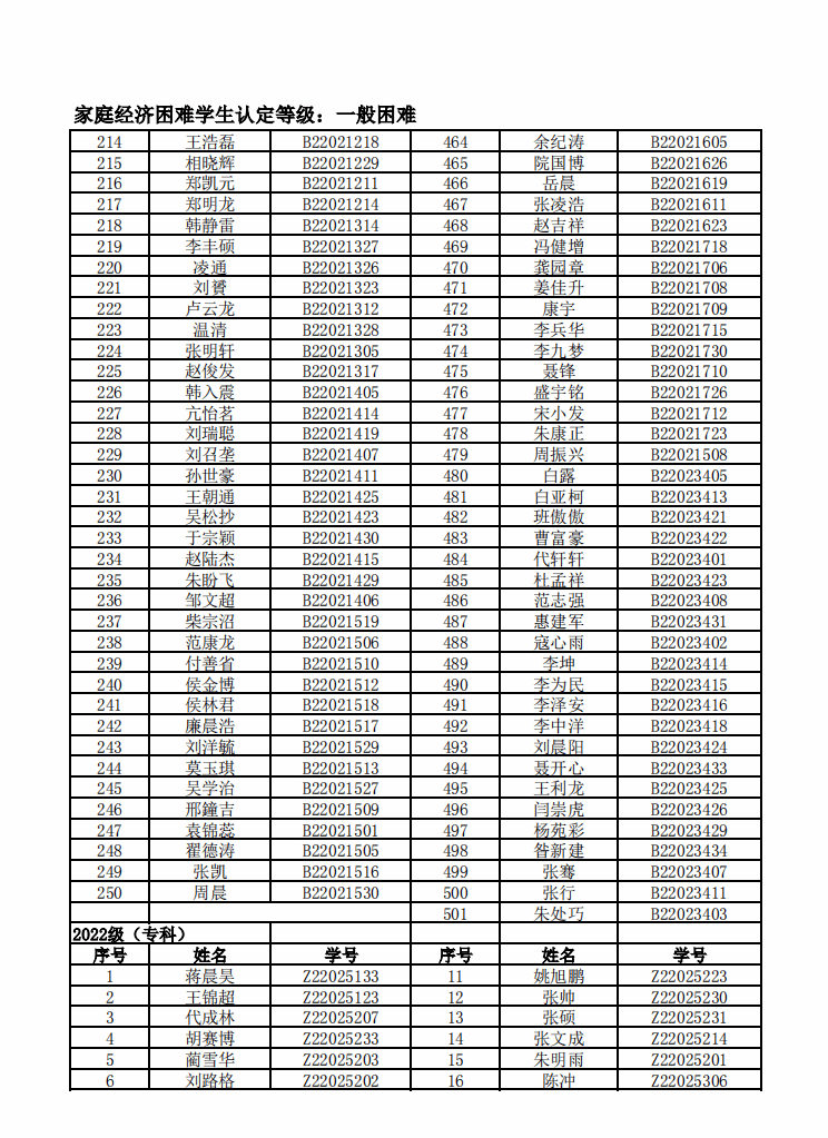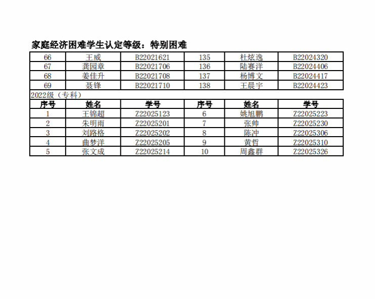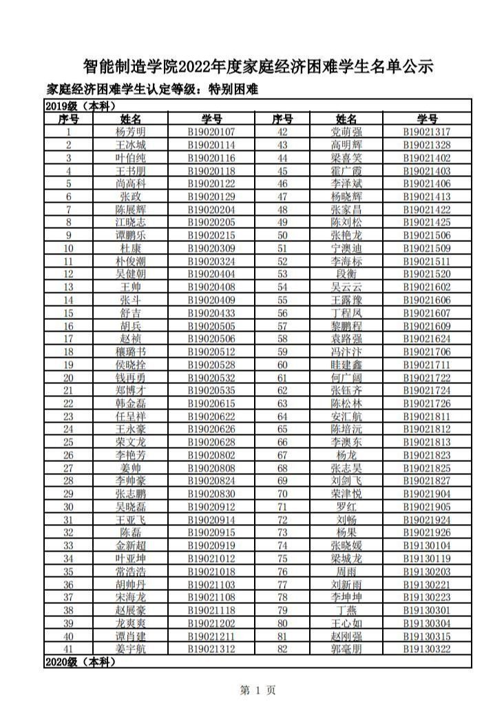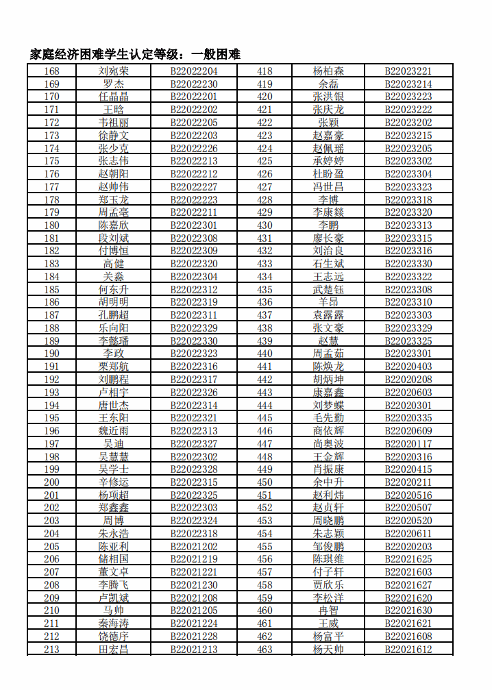 智能制造美高梅娱乐场 2022年度家庭经济困难学生名单公示