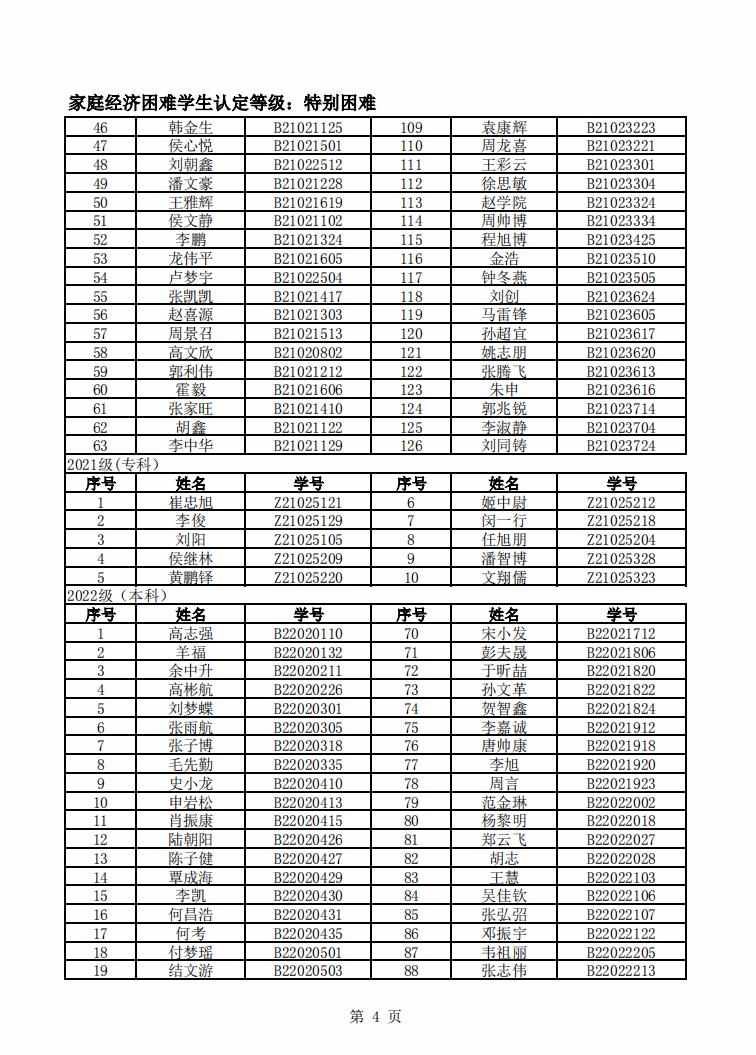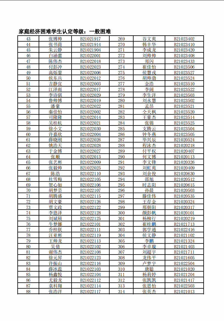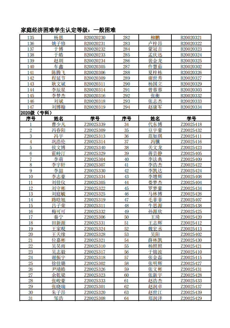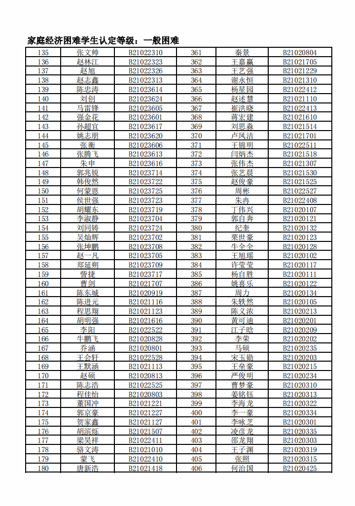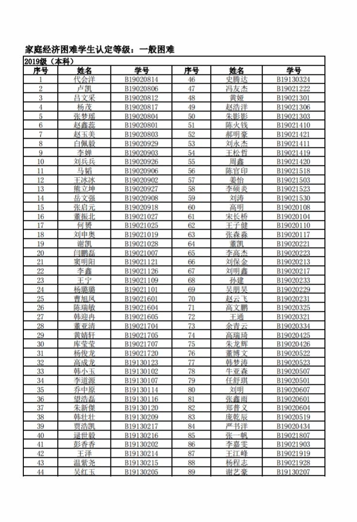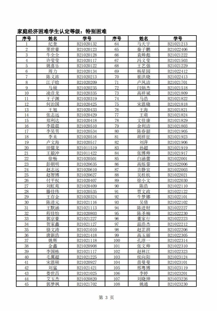 智能制造美高梅娱乐场 2022年度家庭经济困难学生名单公示