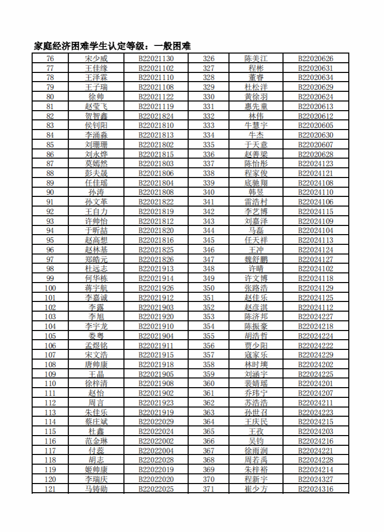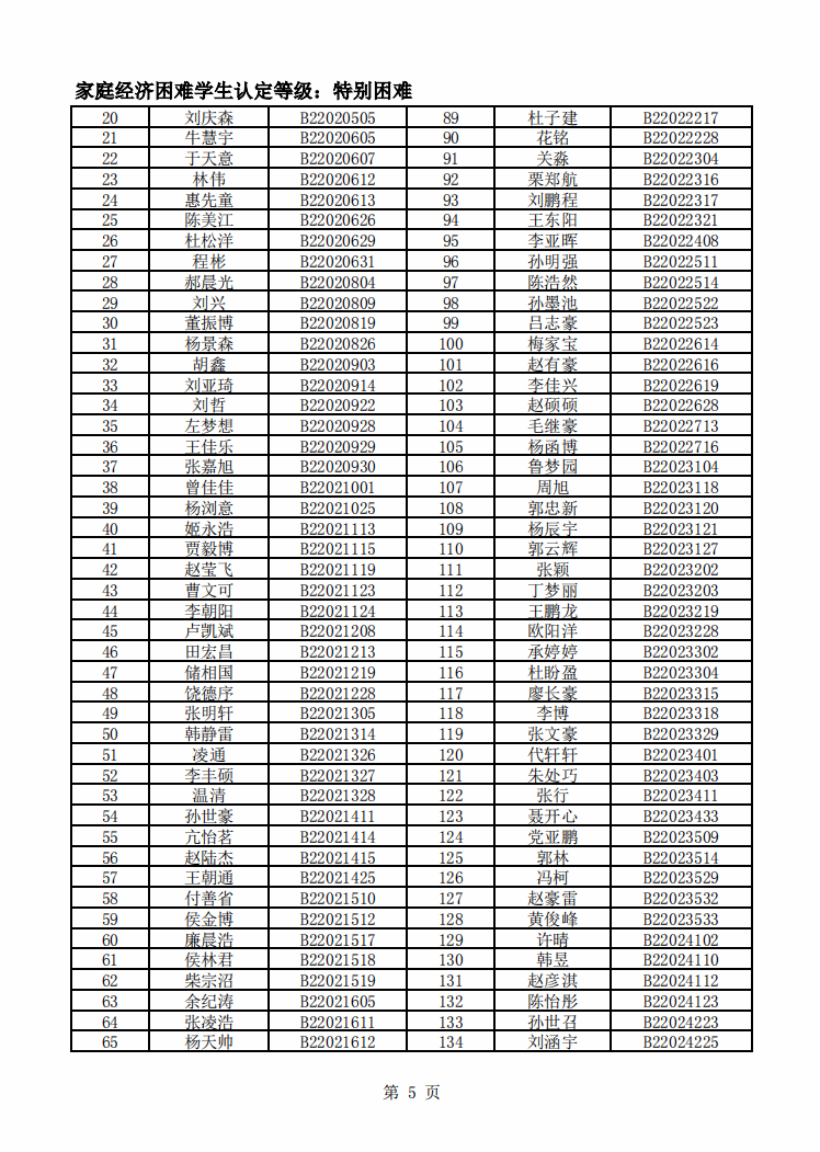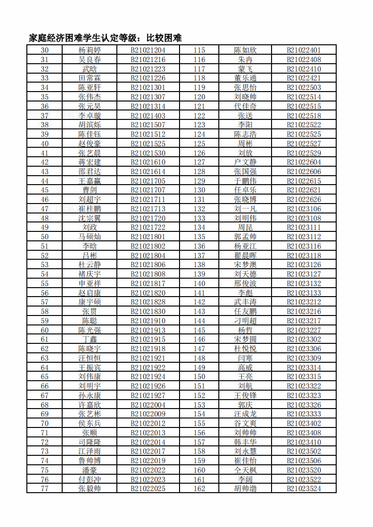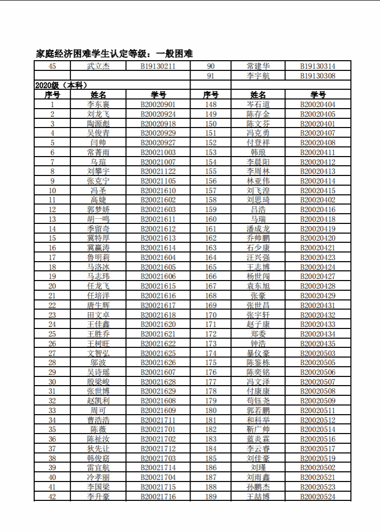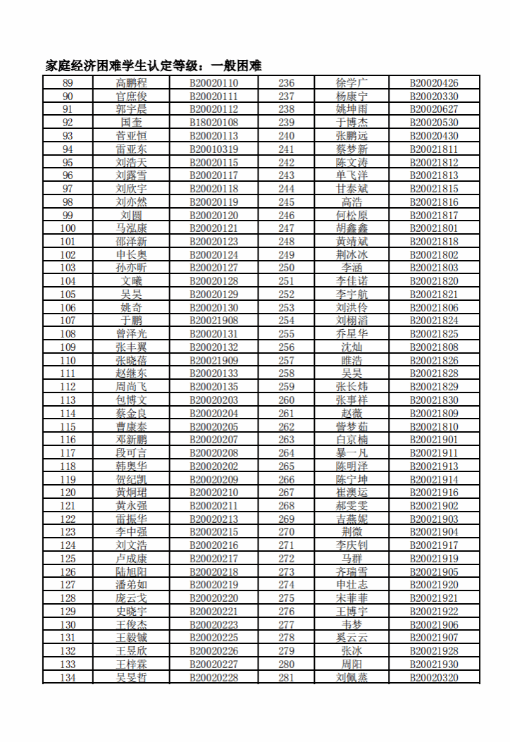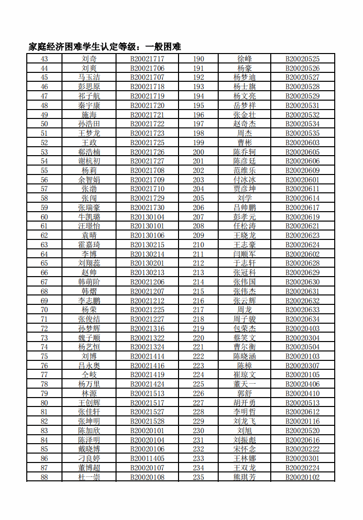 智能制造美高梅娱乐场 2022年度家庭经济困难学生名单公示