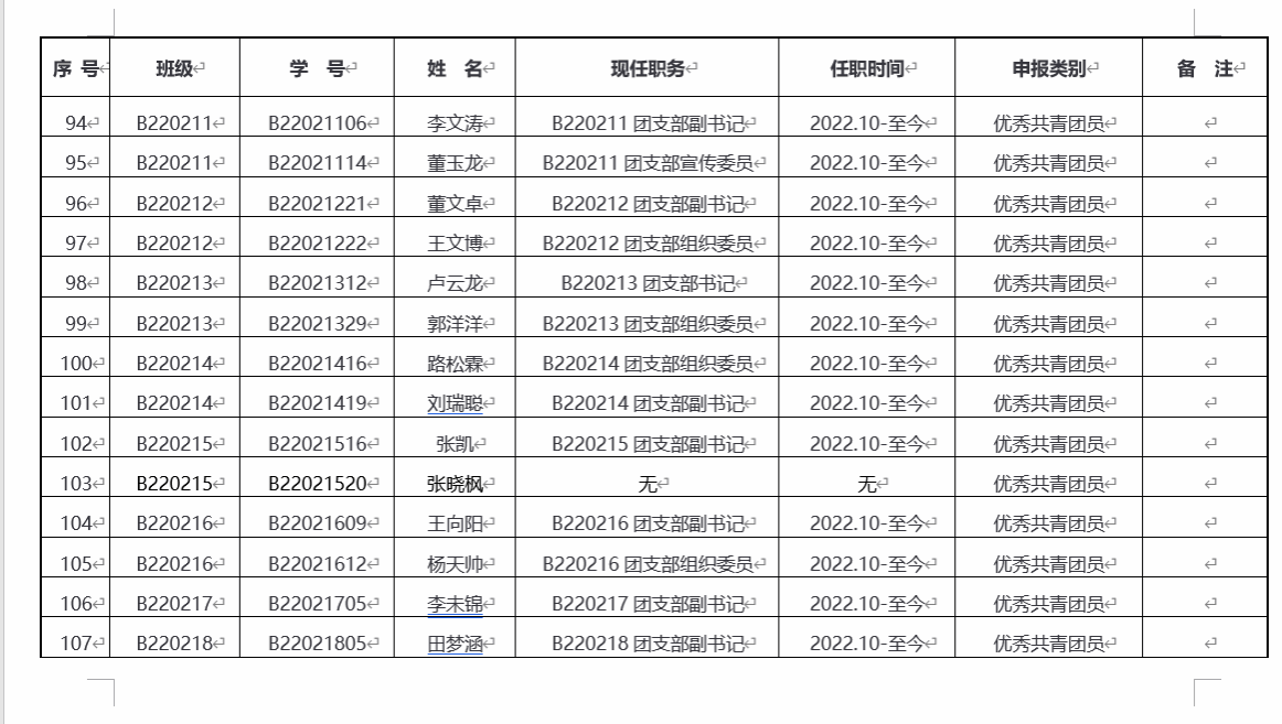 智能制造美高梅娱乐场 团委2022年度五四表彰评选申报汇总表
