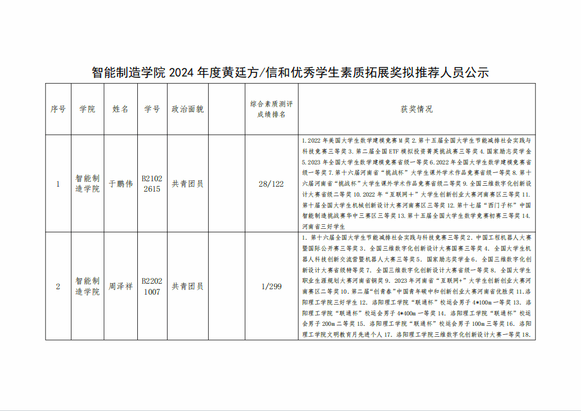关于美高梅娱乐场 2024年黄廷方/信和优秀学生素质拓展奖推荐人选的公示: