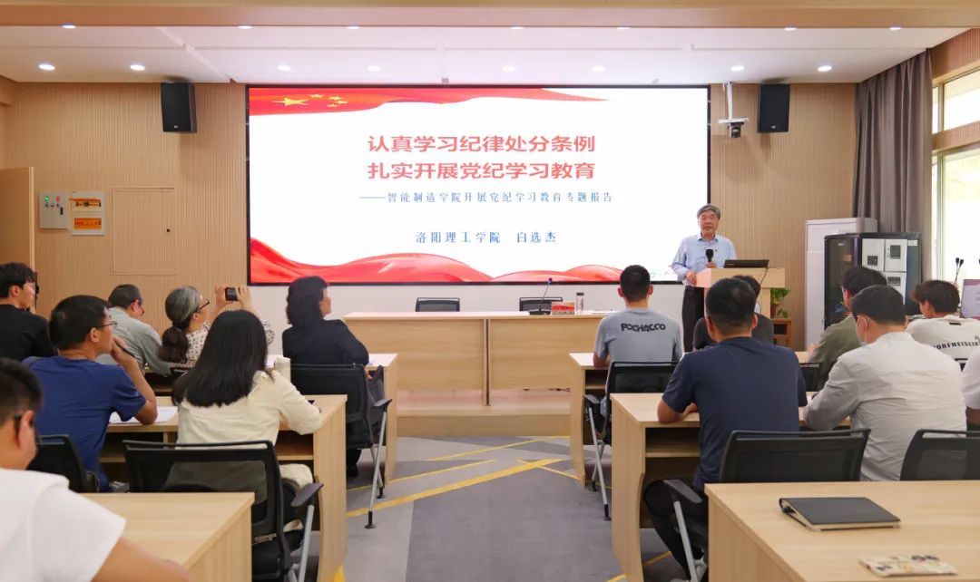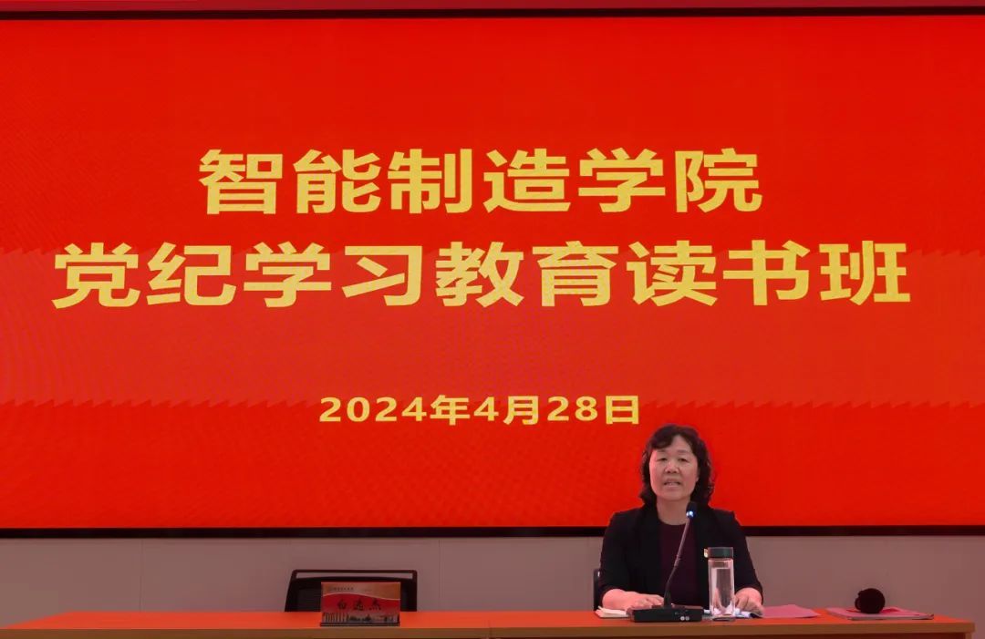 2024年4月28日下午,智能制造美高梅娱乐场 党纪学习教育读书班在王城校区机械楼CS203开班,美高梅娱乐场 领导班子成员、全体教职工党员及学生党员代表共计120余人参加此次开班。开班仪式由美高梅娱乐场 党委书记赵建利主持,邀请洛阳市委宣讲团成员、美高梅娱乐场 形势与政策宣讲团成员白选杰老师做专题辅导报告。