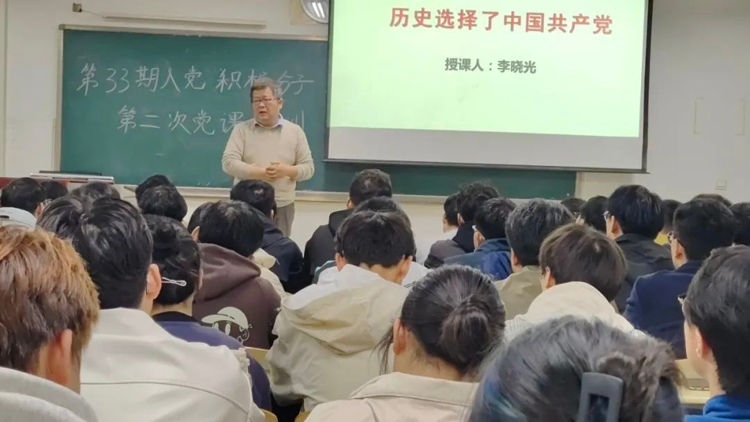 本次党课的主题为《历史选择了中国共产党》。李晓光老师引导同学们了解了中国共产党的建党精神––坚持真理、坚守理想,践行初心、担当使命,不怕牺牲、英勇斗争,对党忠诚、不负人民。