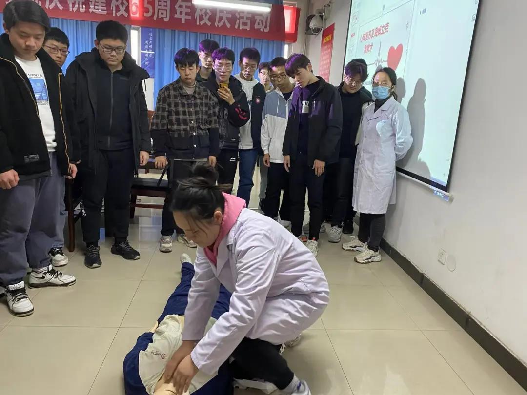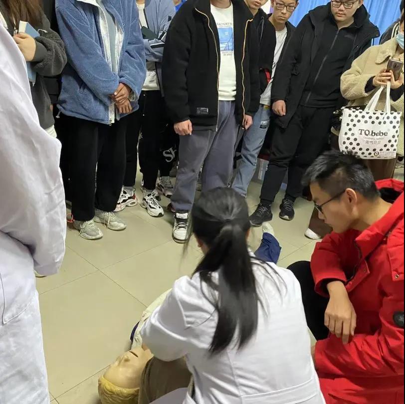 随后,中心医院医生张蕾、刘萍等分别以婴儿、成人等几种类型,介绍了如何处理气道异物梗阻紧急情况,并现场示范正确操作方法,使急救知识形象化、生动化,在具体真实操作中,加强了学生对急救方法的理解与感悟。