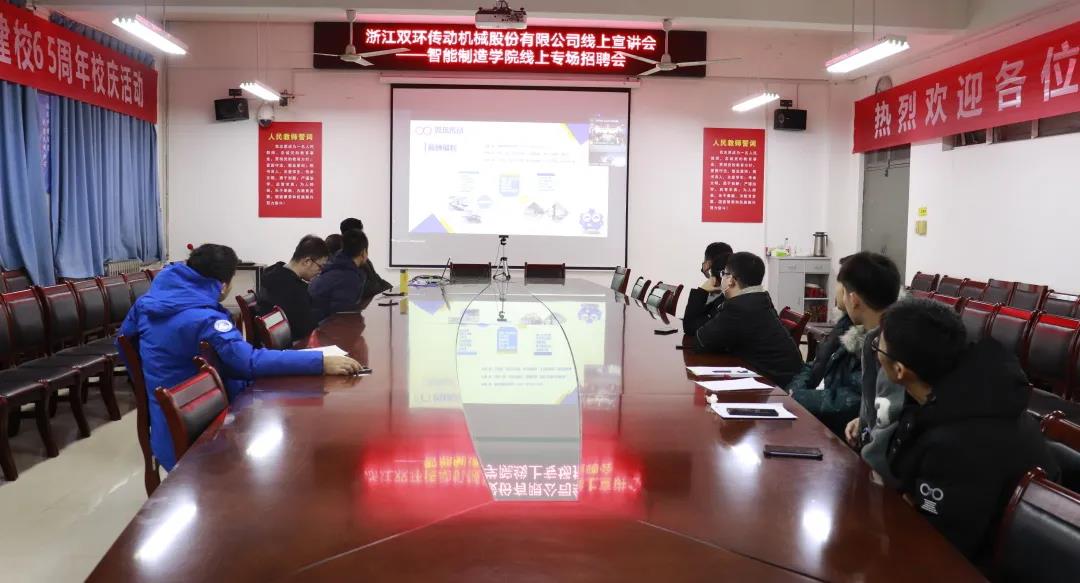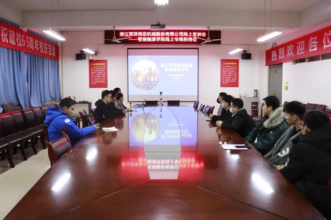 为切实做好美高梅娱乐场 毕业生就业工作,搭建毕业生与用人单位的交流平台,积极为用人单位输送应用型人才,美高梅娱乐场 于12月8日下午在CS304会议室举行了与浙江双环传动机械股份有限公司的远程宣讲会。会议以线上方式进行,美高梅娱乐场 党委副书记王艳敏,辅导员陈雷、张灏参加会议。