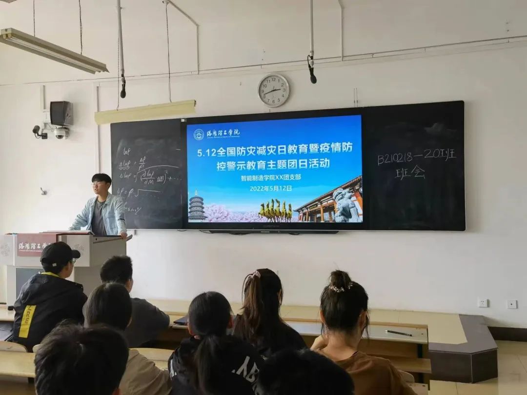会议结束后,美高梅娱乐场 辅导员老师组织学生开展防震减灾暨疫情防控警示主题教育班会。