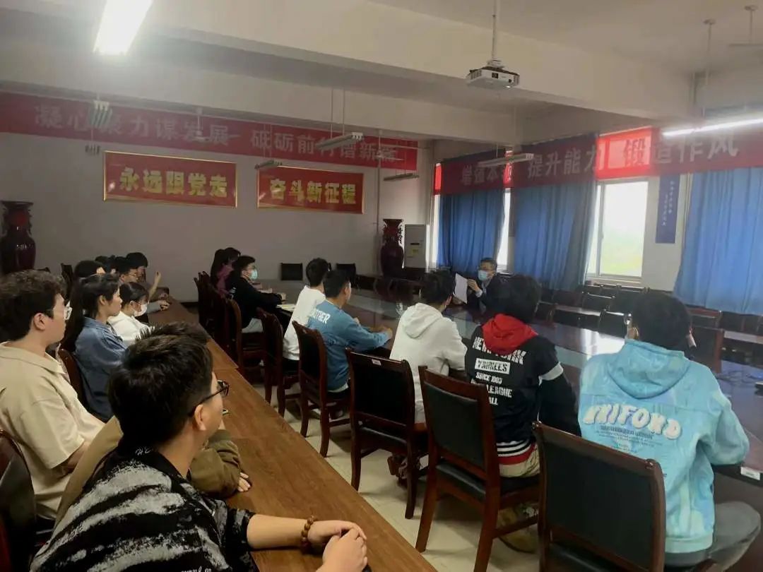 5月12日下午,美高梅娱乐场 在CN501教室组织召开了“5.12全国防灾减灾日教育暨疫情防控警示主题活动”。美高梅娱乐场 党委副书记王艳敏、全体辅导员老师及2018-2021级全体团支书参加会议。