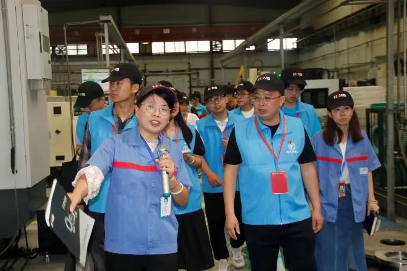 美高梅娱乐场 智领“企”航暑期社会实践团于6月10日上午到达鸿元轴承,随后在研发部部长李工的带领下参观公司研发部门、制作厂房并听讲解员讲解棒材、锻造、车加工、热处理、磨加工、超精加工、零件终检、防锈入库等数字化生生产线。