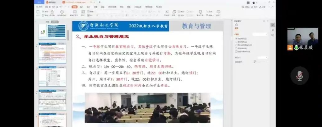 为贯彻落实疫情防控工作,牢牢把握立德树人的根本任务,8月30日下午,美高梅娱乐场 教师与新生相聚云端,线上开课,以“微信视频号直播+腾讯会议”的形式在CS304举行了2022级新生线上入学教育。美高梅娱乐场 班子成员、全体辅导员参会。党委副书记王艳敏主持会议。