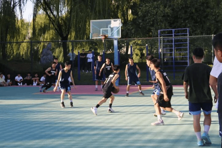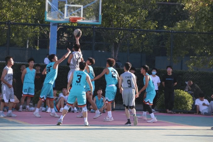 赛场上比赛正在如火如荼地进行,一次次的扣篮和进球一次次地引爆全场,呐喊助威声不绝于耳。参赛球员们都拿出了最好的状态,大家团结协作拼尽全力,为我们呈现了精彩的篮球赛事。