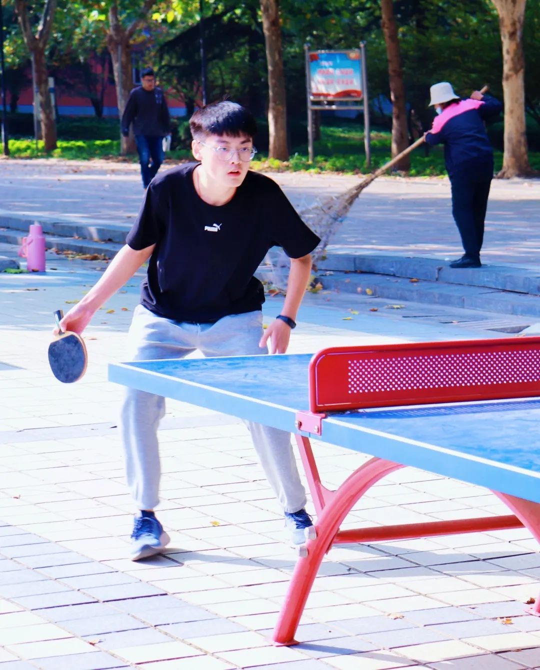 赛场上选手们沉着冷静,视线从始至终没有离开过那颗乒乓球,他们不断变换招式,正手反手交替只是常规操作,他们时而近台快攻,时而远台对拉,忽而稳削防守,忽而大板扣杀,频繁变线,声东击西。随着时间的推移,比赛逐渐进入了白热化阶段七平,八平,九平,十平,场下观众也响起了阵阵的呐喊声。