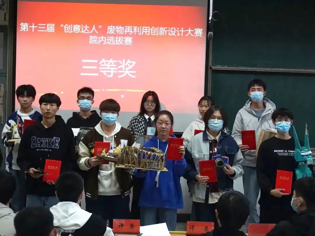 本次比赛增进了学生的环保意识,提高了学生学以致用的实践能力,同时也展现了大学生的艺术风采,激发了同学们创新设计的兴趣。