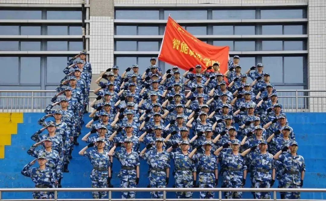 认真军训的智能学子