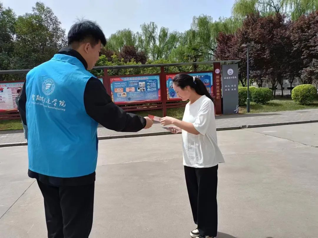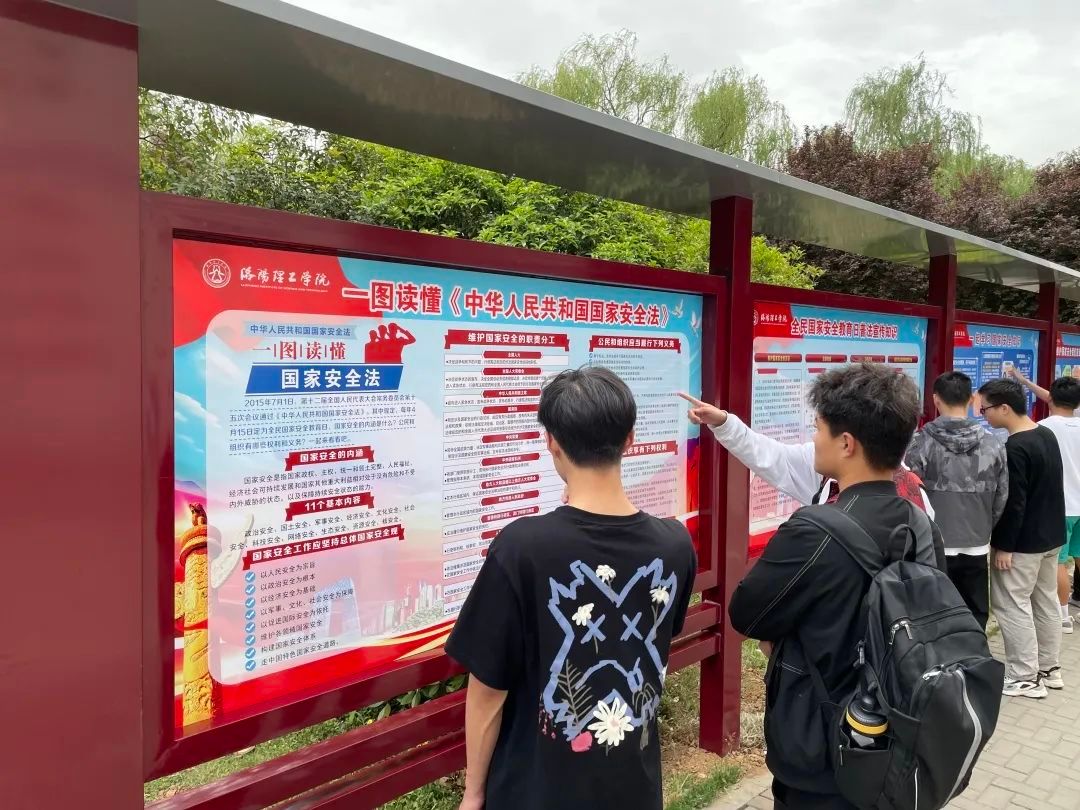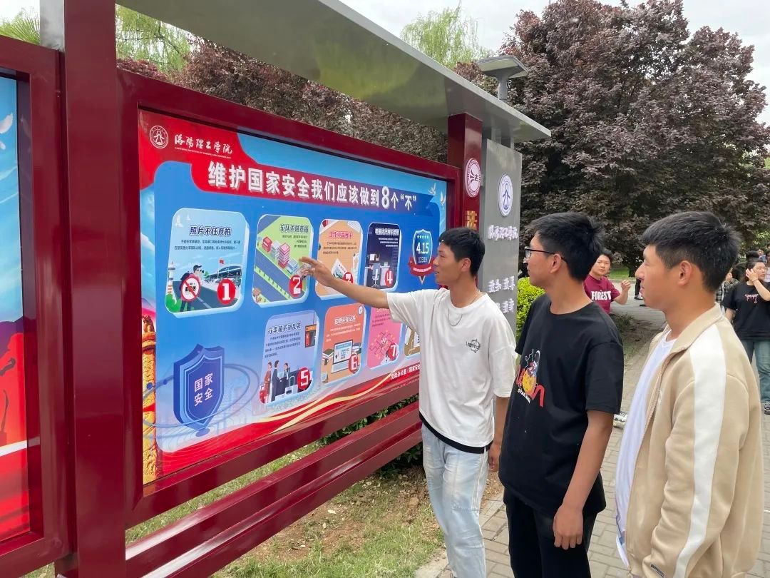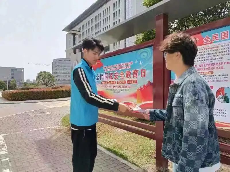 校园内开展立体宣传,公告栏内张贴着国家安全教育宣传海报、志愿者们也为路过的同学们发放宣传材料,该举措不仅营造了良好的国家安全宣传氛围,更增强了学生们对国家安全知识的了解。