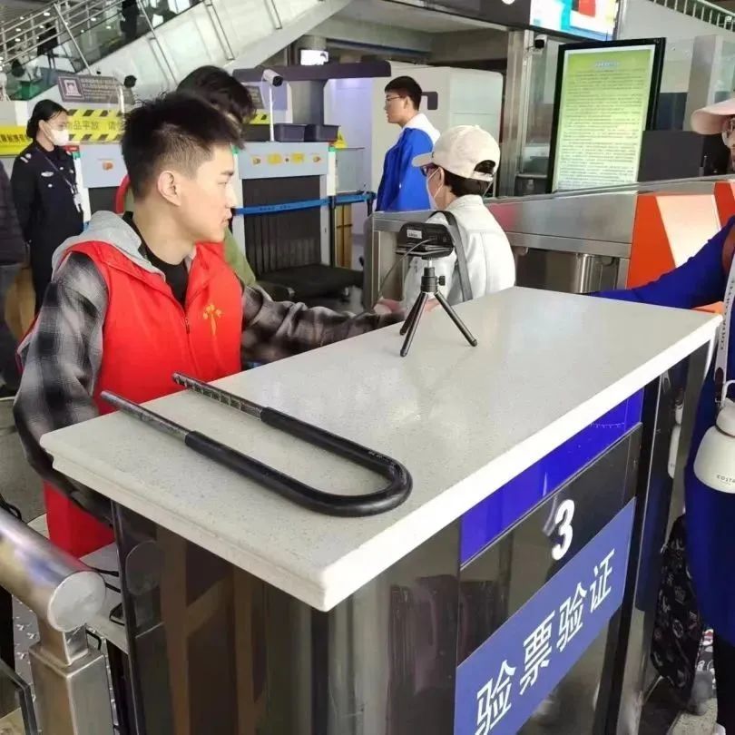 穿蓝色马甲的志愿者们分工明确,积极配合工作人员,他们热情耐心的为广大旅客提供导购导乘咨询、路外安全宣传、重点旅客协助等服务。他们用真诚的微笑和暖心的服务,温暖着每位旅客的心。