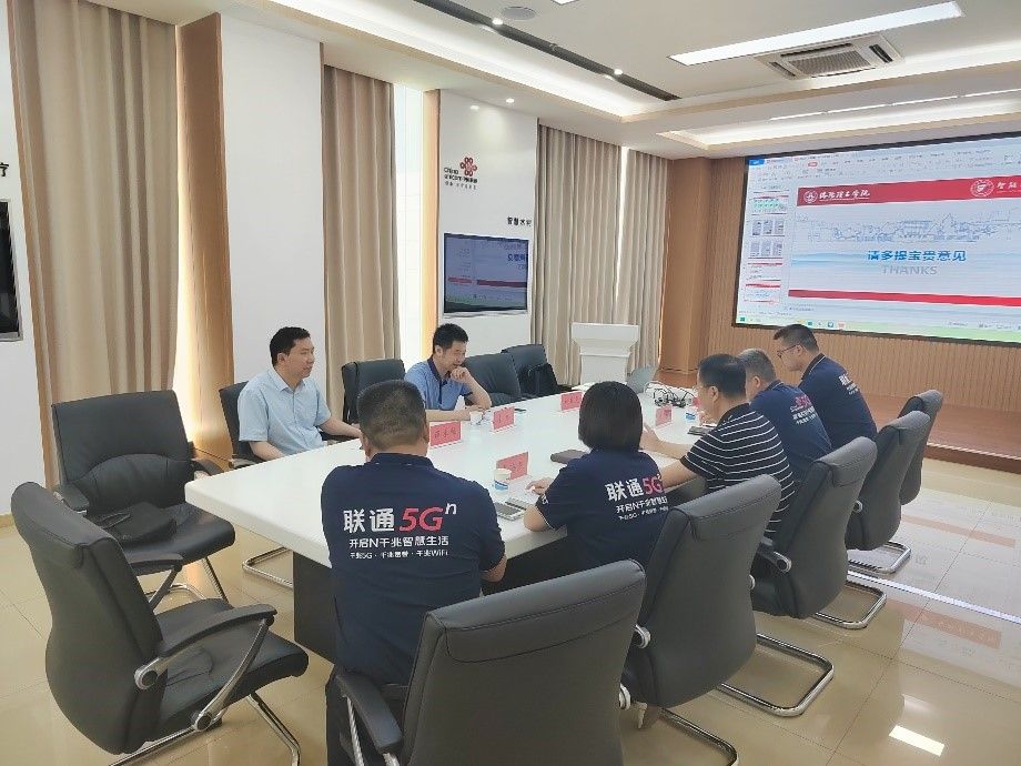5月16日下午,美高梅娱乐场 院长李彬带领薛永栋教授,任二洲、刘冀尧等教师前往位于洛龙区的中国联合网络通信有限公司洛阳市分公司参观交流,洛阳市政协委员、洛阳联通党委委员、副总经理刘亚奎,洛阳联通高校中心总经理崔海燕、企业中心总经理李季,创新中心副总经理刘川川陪同参观。