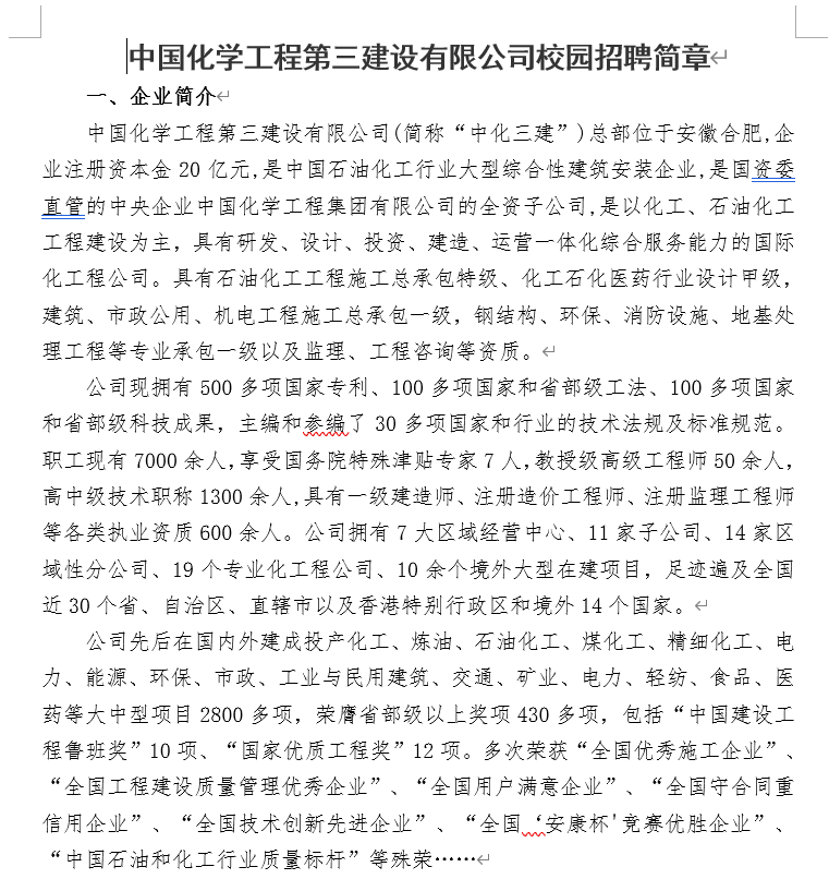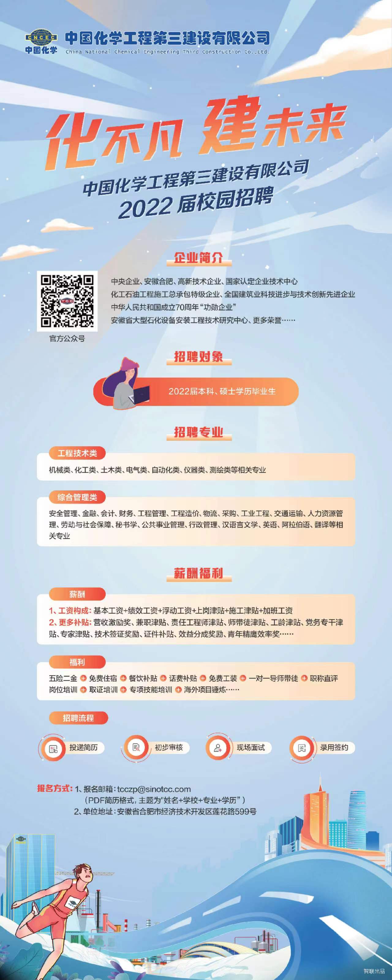 现诚邀您参加中国化学工程第三建设有限公司美高梅娱乐场 专场招聘会