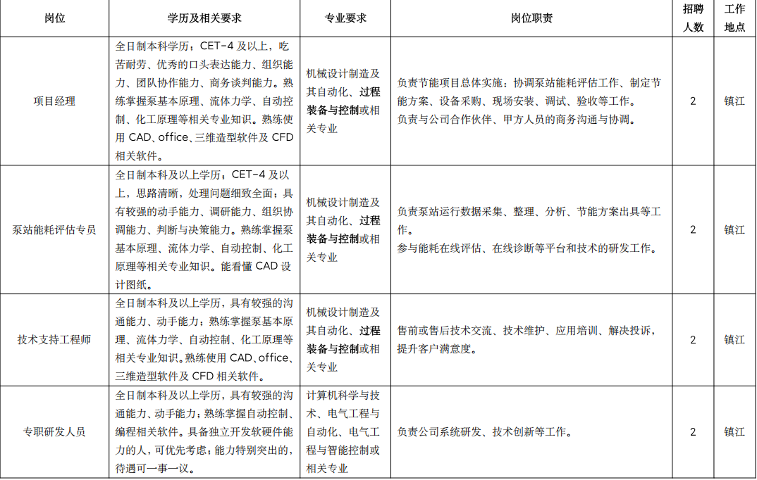 公司依托江苏大学国家水泵及系统工程技术研究中心、江苏省流体机械工程技术研究中 心、江苏大学 流体机械工程技术研究中心(拥有国内唯一以水泵为研究对象的国家重点学科), 团队核心成员均为长期从事水泵节能研究的研究员、博士生和研究生,具有较高的科研能力 和丰富的工程经验。