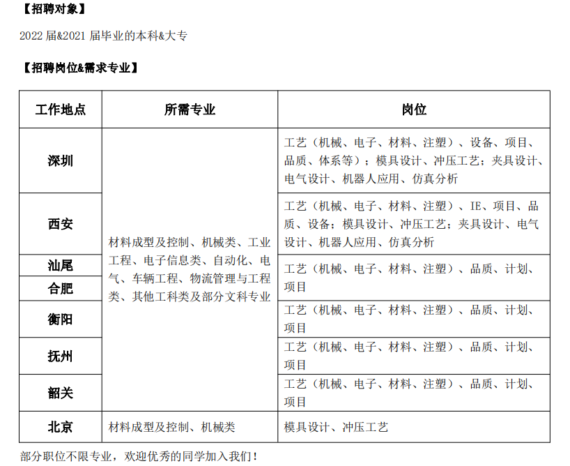 弗迪精工有限公司(事业部)已有近 20 年的模具设计研发、制造与车灯研发生产经验。具备年产四款整 车冲压模具、塑胶模具、焊接夹具、车身检具、分总成的设计与开发能力,以及汽车照明类组合前灯、组合 后灯、后视镜、室内外照明小灯、发光 logo 的研发生产能力,建筑面积约 23 万平方米,分布于日本、北京、 西安、深圳、长沙、衡阳等六大基地,现有员工 8000 余人。 目前在建汕尾、合肥、抚州等,新基地,2022 年下半年陆续投产。