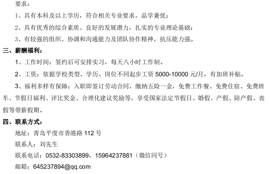 青岛征和工业股份有限公司招聘信息