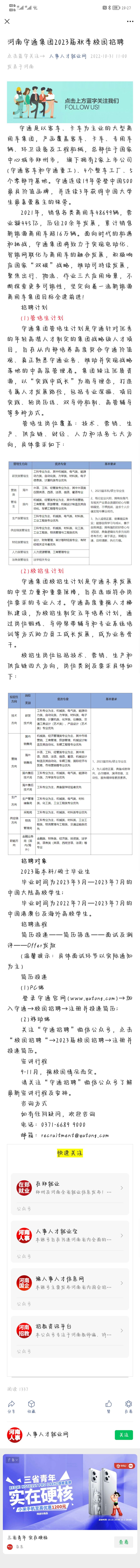 河南宇通集团2023届秋季校园招聘信息