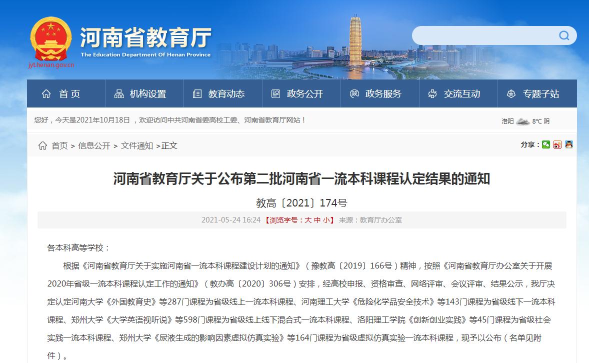 河南省教育厅发布了《河南省教育厅关于第二批省级一流本科课程认定名单的公示》,美高梅娱乐场 《机械原理》、《过程装备控制技术》2门课程被拟认定为第二批省级一流本科课程。美高梅娱乐场 《机械工程材料》获批第一批省级一流本科课程,截至目前,美高梅娱乐场 有3门课程获批省级一流课程。