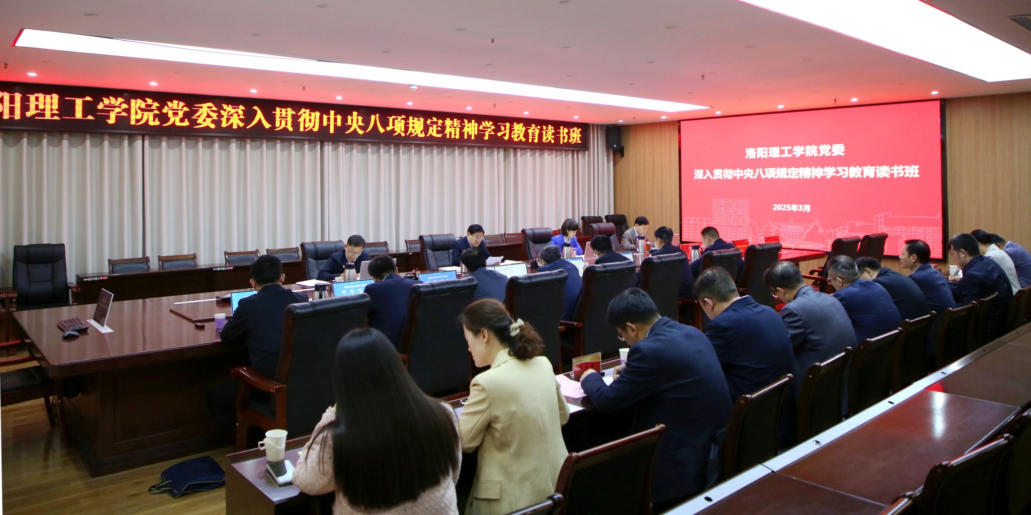 党委用两天时间,采取书记领学、专题学习、个人自学和交流研讨相结合的方式,举办深入贯彻中央八项规定精神学习教育读书班。
