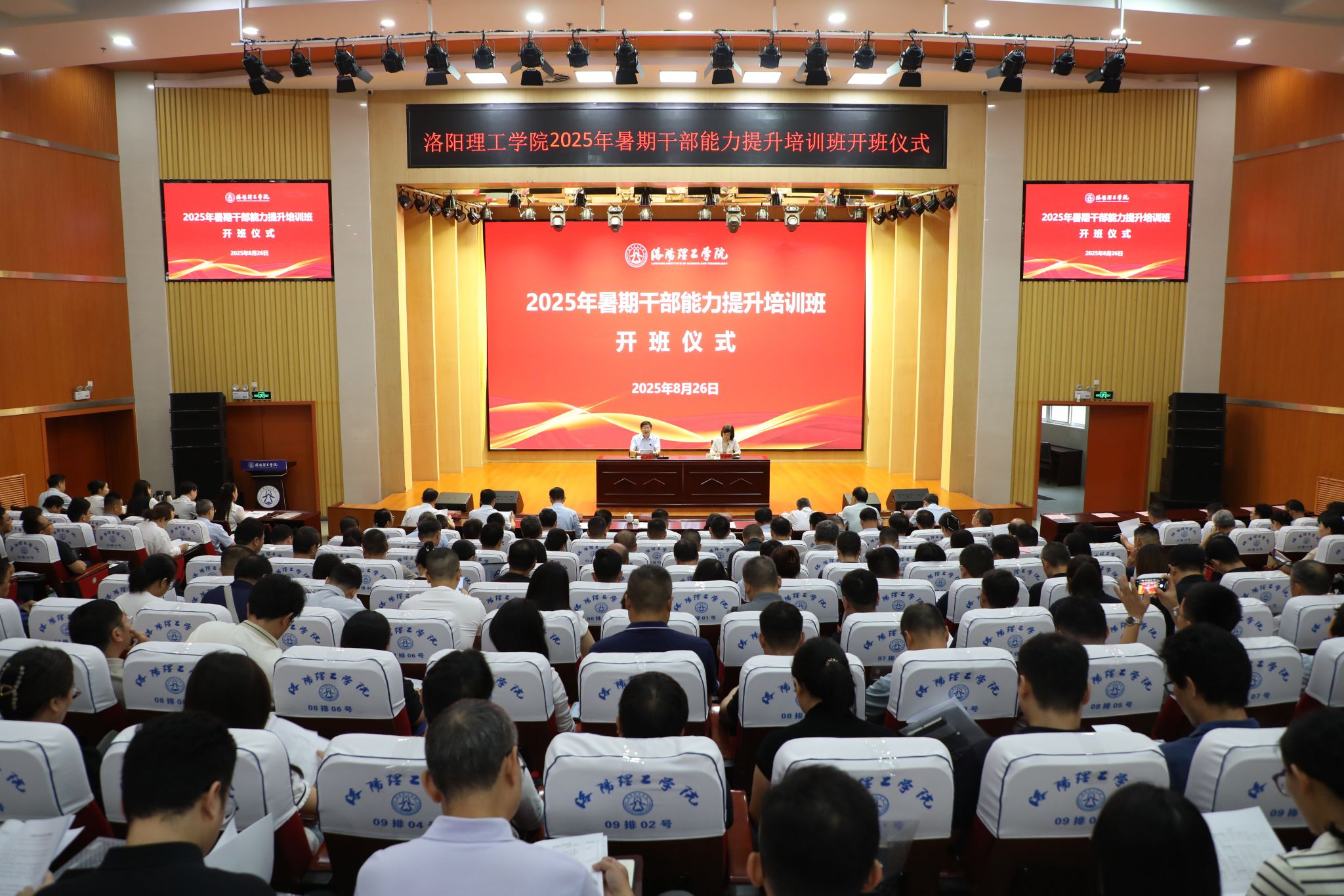 2025年暑期干部能力提升培训班在王城校区图书信息中心报告厅开班。全体校领导出席开班仪式,全校科级以上干部、基层教学组织负责人、全体辅导员参加。开班仪式由校长丁梧秀主持。