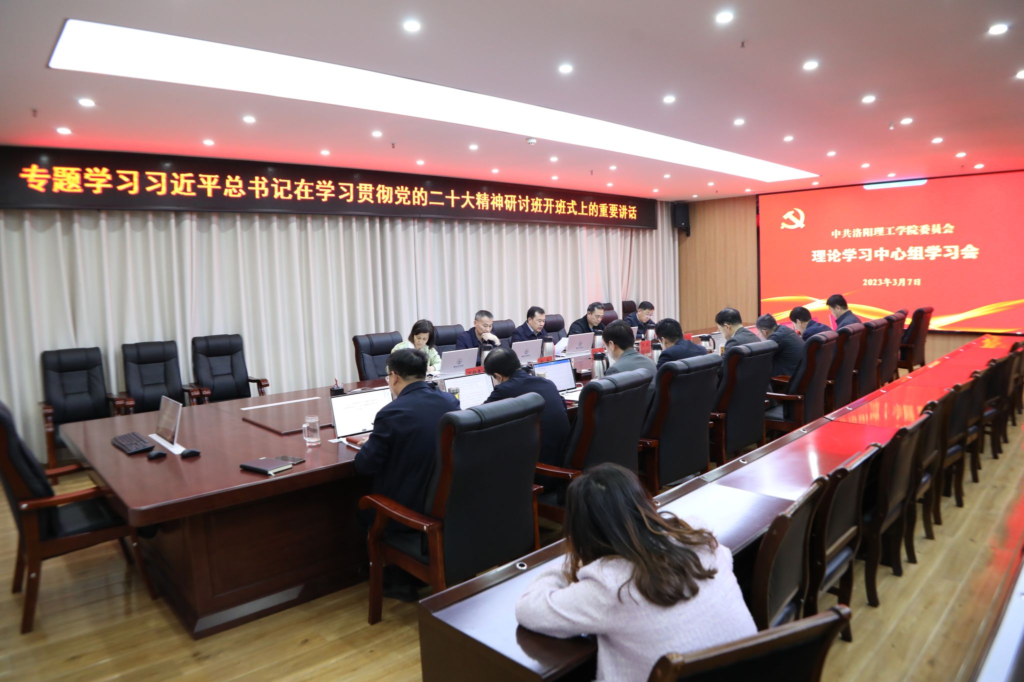 在王城校区办公楼116会议室举行党委理论学习中心组学习会,专题学习习近平总书记在学习贯彻党的二十大精神研讨班开班式上的重要讲话精神,交流学习体会,研究贯彻落实举措。全体校领导出席会议,党委理论学习中心组成员参加会议。